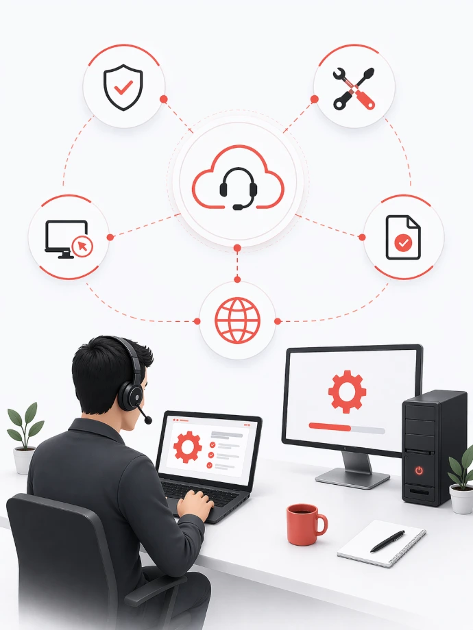 Votre ordinateur ralentit ? Un bug ? Une question ? Ne perdez plus du temps précieux et faire appel à notre équipe ! Nous intervenons à distance, rapidement et efficacement, pour diagnostiquer et résoudre vos soucis informatiques sans que vous ayez à vous déplacer.